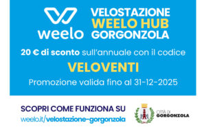 Usando il codice sconto VELOVENTI sarà possibile, tramite app, l’acquisto dell’abbonamento annuale, per il deposito della bici presso la struttura di Piazza Europa, accanto alla stazione della Metropolitana di Gorgonzola, a 70 € invece di 90 €.