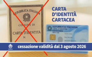 Le carte d’identità cartacee (CIC) cesseranno di essere valide il 3 agosto 2026 (indipendentemente dalla data di scadenza riportata sul singolo documento), in quanto non più rispondenti ai requisiti di sicurezza dei documenti d’identità e di viaggio previsti dal Regolamento europeo 1157/2019 secondo la Circolare DAIT del Ministero dell’Interno n.76 del 13/10/2025.