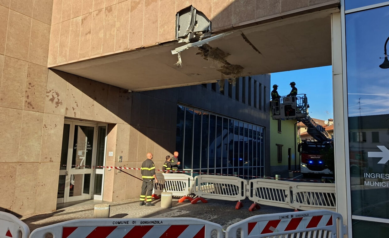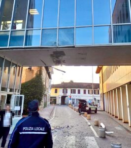 Alle 7:30 di lunedì 27 ottobre 2025 è stata danneggiata la passerella sopraelevata del Municipio di Gorgonzola, struttura che fa da “ponte” sopra via Cesare Battisti e collega le due ali della Casa comunale.