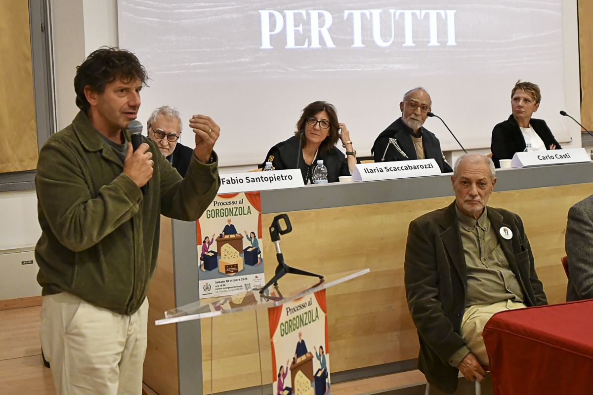 A salire sul “banco degli imputati” è stato proprio lui, il celebre formaggio erborinato che porta il nome della città, nella persona dello scrittore Fabio Santopietro. Testimonianze, controinterrogatori, esperti e appassionati si sono confrontati in un finto processo teatrale – brillante e coinvolgente – sul destino del gorgonzola. In un format a metà tra dibattito culturale e teatro partecipato, dove il divertimento ha fatto rima con conoscenza. Salvare o condannare il formaggio con la muffa? Una domanda provocatoria che ha dato vita a un dibattito gustoso quanto divertente, capace di unire riflessione e intrattenimento.