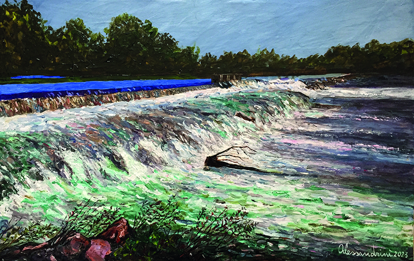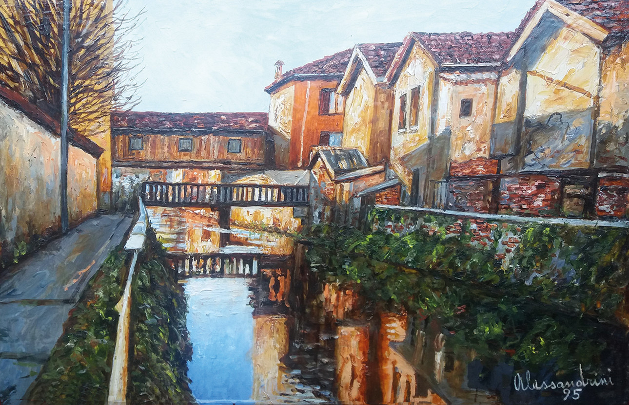La mostra è un omaggio al territorio e, in particolare, al Naviglio Martesana e all’acqua, elemento primordiale e filo conduttore di un racconto che intreccia natura, storia e identità. Un tema profondamente sentito, che prende forma attraverso riflessi e riverberi, mille colori che mutano con la luce e un movimento continuo che avvolge e accompagna lo sguardo.