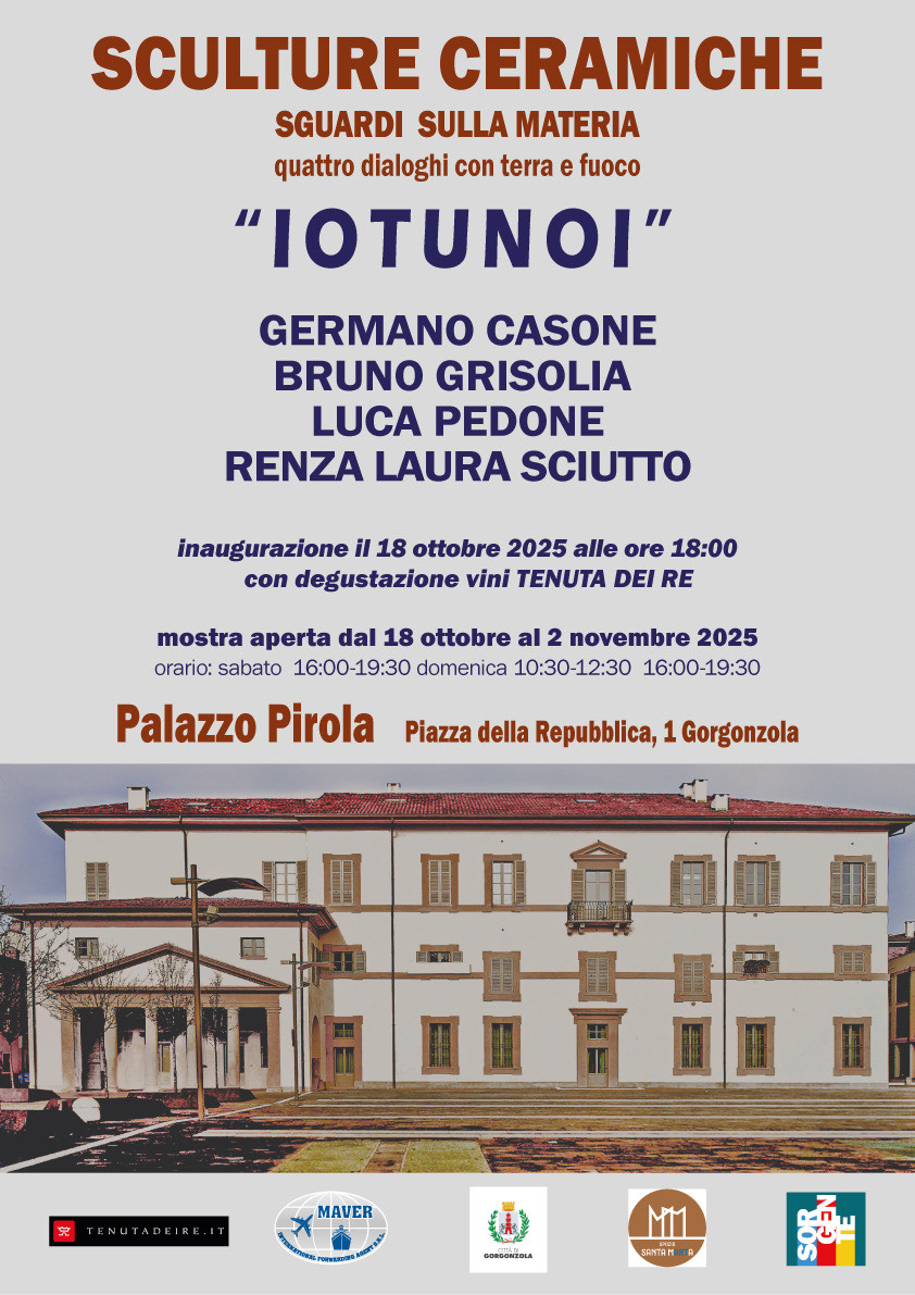 La ceramica si fa linguaggio vivo, sperimentale e poetico nella nuova mostra ospitata al Palazzo Pirola di Gorgonzola, dove Germano Casone, Bruno Grisolia, Luca Pedone e Renza Laura Sciutto intrecciano sensibilità e percorsi artistici differenti, ma uniti da un’unica passione: dare forma alla creta per trasmettere al pubblico emozioni.