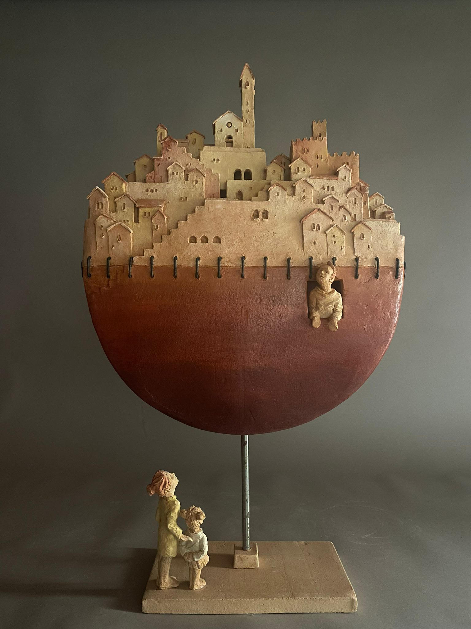 Nelle opere di Bruno Grisolia il sogno prende corpo attraverso arche e torri, soli e lune, simboli arcaici e universali che evocano viaggi interiori, incontri e trasformazioni. Le sue ceramiche si offrono come narrazioni sospese tra memoria, mito, provocazione ed interazione con il pubblico.
