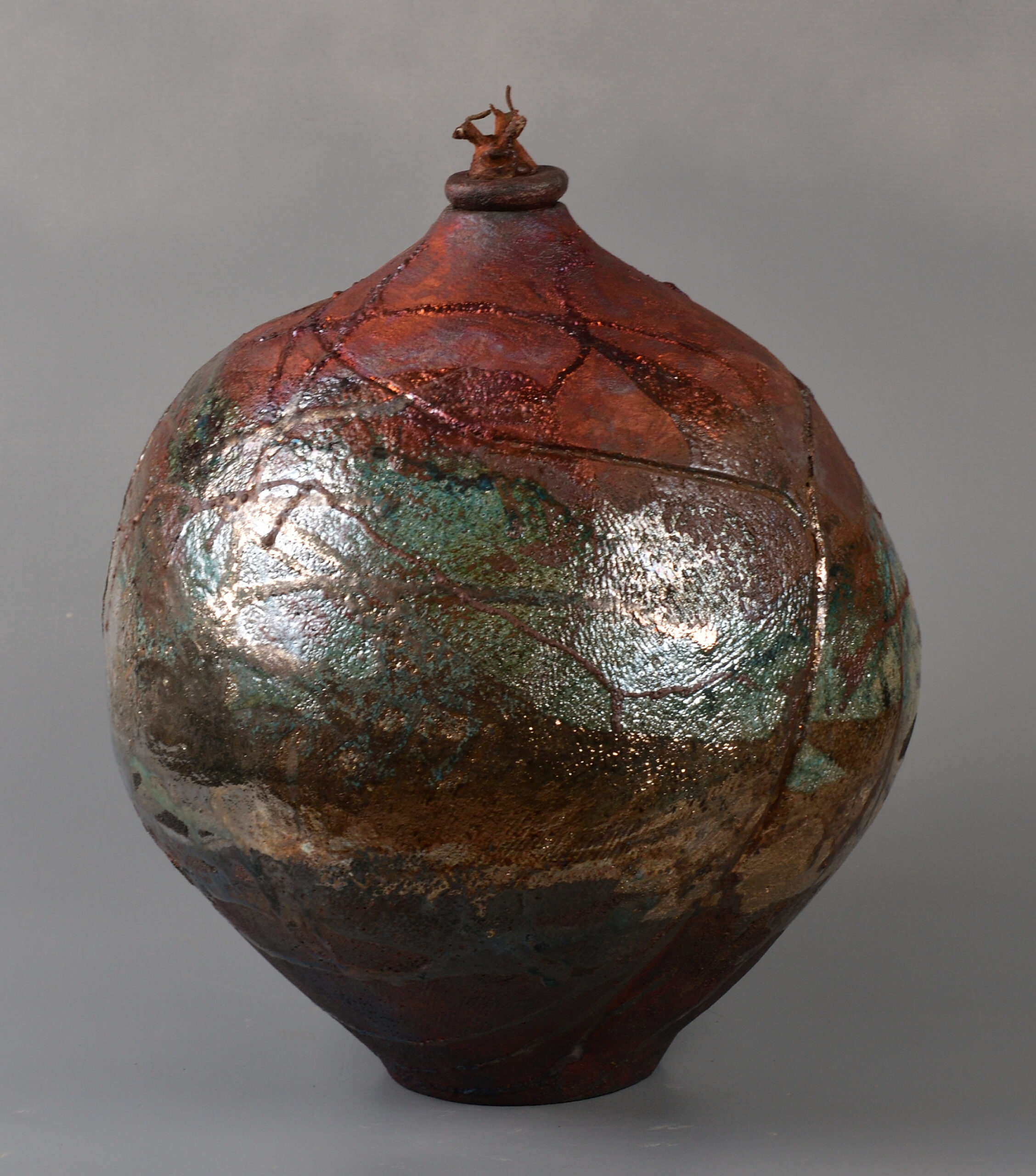 Infine, Renza Laura Sciutto porta in mostra le sue opere realizzate con la tecnica raku, arricchite da smalti cangianti da lei creati e inserti metallici. Le sue superfici corrose e vibranti diventano mappe poetiche, scritture materiche che evocano storie, memorie e legami tra passato e presente.